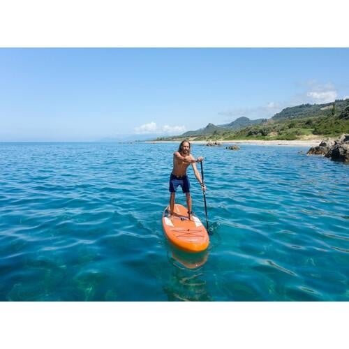The new FUSION offers a more generous volume and payload capacity, ideal for those seeking easier handling and the ability to carry more gear. The comfortable diamond-grooved footpad provides extra grip, while the reinforced stainless steel leash D-ring ensures secure handling in small waves.