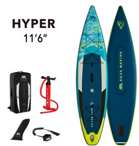 The 11'6" size is fast, incredibly easy to paddle, and easy to balance, even for first-time SUPers. The 6-inch thickness provides amazing rigidity, while the extra volume keeps you and your gear dry. The unmatched rigidity and stability of the new dual-chamber construction make the HYPER ideal for carrying camping gear, while its streamlined shape makes it perfect for high-speed cruising, allowing you to paddle farther and longer. The HYPER inflatable touring board is going to be every explorer's favorite mode of transport.