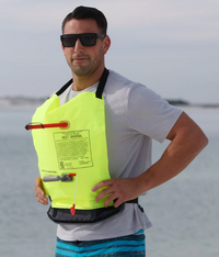 The BOTE PFD inflatable belt is a unique design that keeps paddleboarders (SUP), fishermen, boaters and other paddlers standing securely without compromising movement!