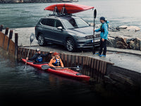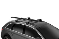 - A surfboard can be easily transported on its side using Thule Surf Pads (sold separately).
