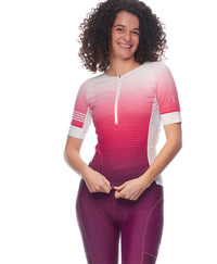 Our SPIN collarless road cycling jersey lives up to its name as it will turn heads, in addition to being practical with its versatile pockets, quick-drying fabric, and integrated sun protection.