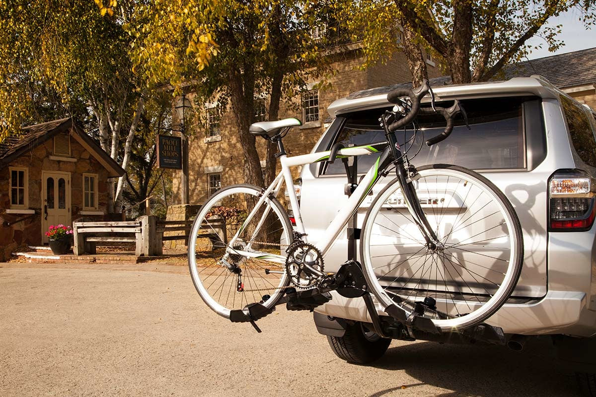 - The adjustable arms securely transport a variety of bicycle sizes and styles.