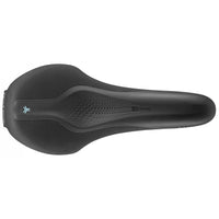 Tailor-made for cyclists in an athletic riding position, where the distance between the sit bones is less than 11 cm. Advanced 3D Skingel technology and the Central Reservoir reduce pressure on sensitive areas. Pedaling comfort is enhanced by the Curva Suspension system.