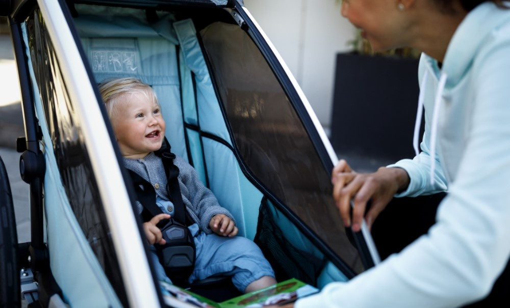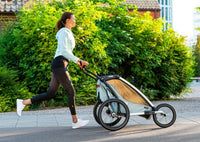The trailer, jogging stroller, and multisport stroller offer both comfort and flexibility for families with an active lifestyle. Includes the basic and comfort packages.