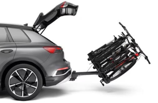 Once the bikes are mounted, the trunk is accessible thanks to the ingenious external tilt pedal. Without the bikes, the trunk is directly accessible.