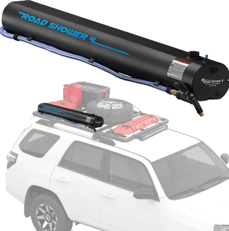 Sandy feet, dirty paws, and bikes slung over your shoulder. The RoadShower is your faithful companion for the convenience of pressurized water in the middle of nowhere. Its secure attachment to your vehicle or trailer allows you to move freely. And while you're out having fun, the sun warms the water in the tank. Check the thermometer, and you can enjoy a hot, sun-powered shower or steam some macaroni and cheese in your camping dishes.